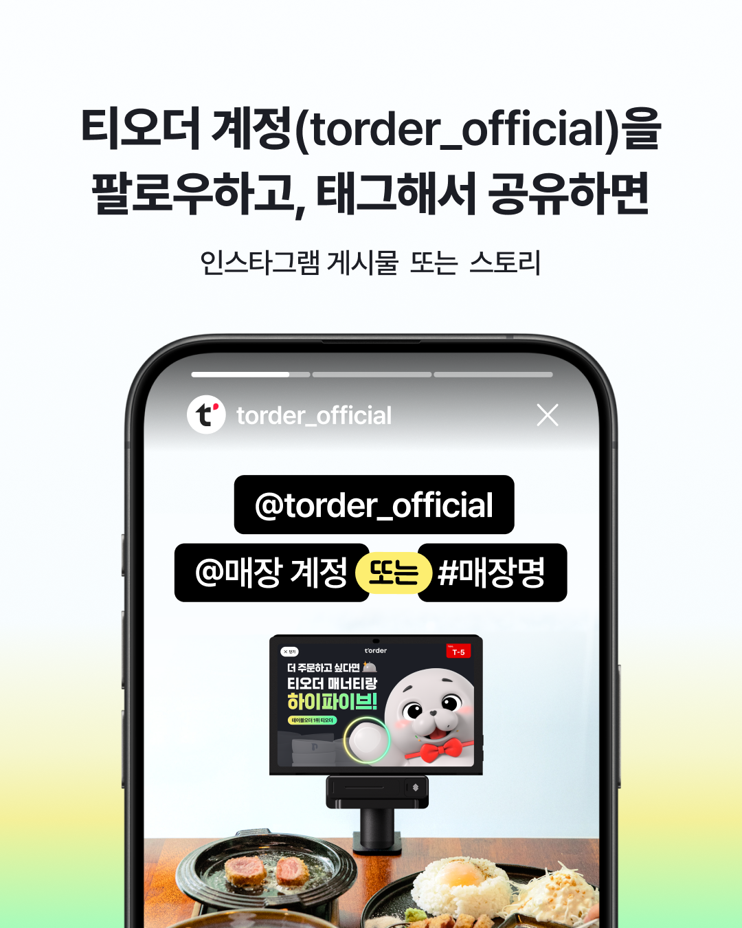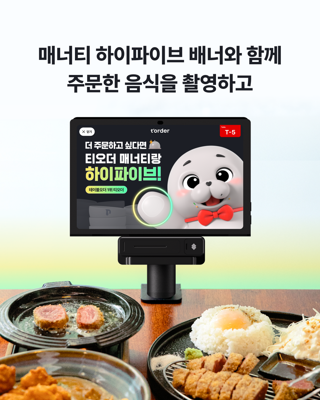 - Step 2 : 주문한 음식과 티오더 배너가 함께 보이게 촬영한다.