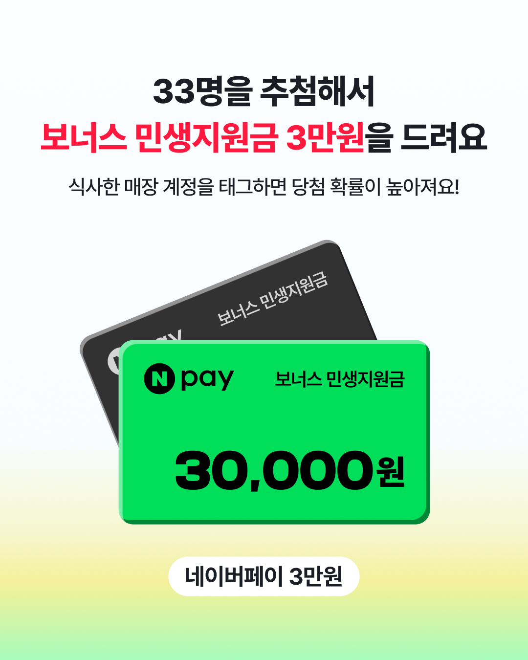 보너스 민생지원금(네이버페이 3만원)을 드립니다.