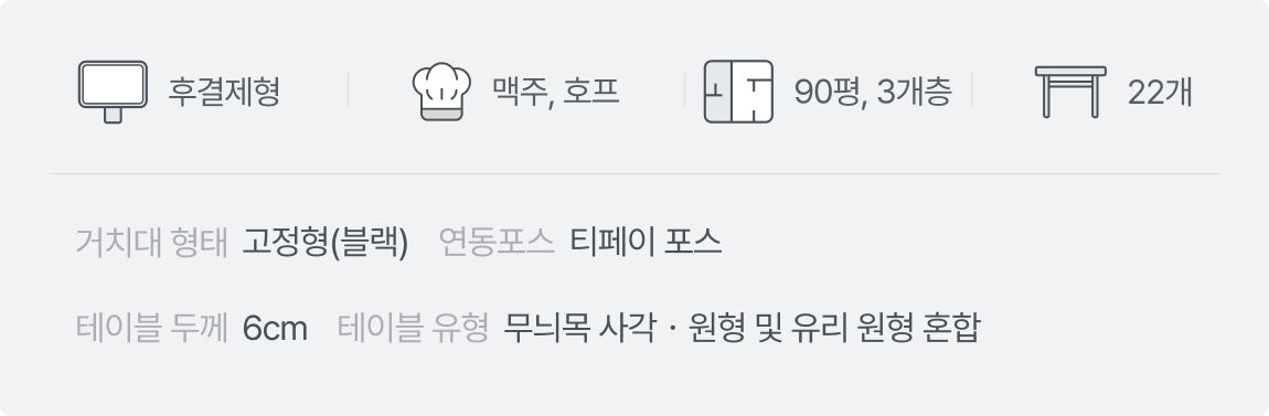 직원 수를 늘리지 않고도, 테이블을 더 많이 배치할 수 있었던 건 티오더를 설치했기 때문에 가능했습니다. 크래프트한스와 같이 추가 주문이 자주 일어나는 주류 매장일 수록 테이블오더의 효용성이 높아지기 마련이니까요.